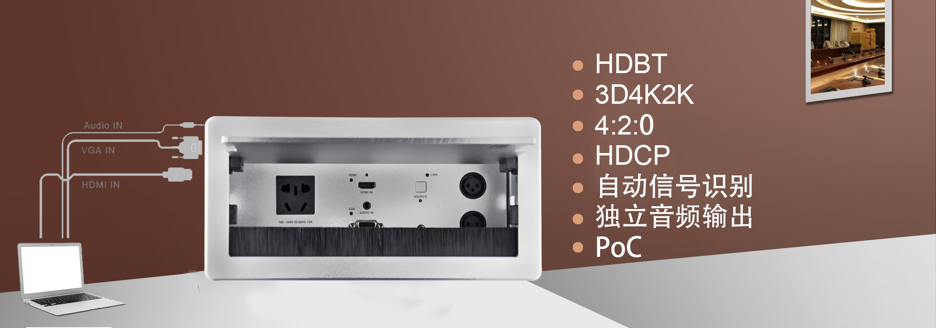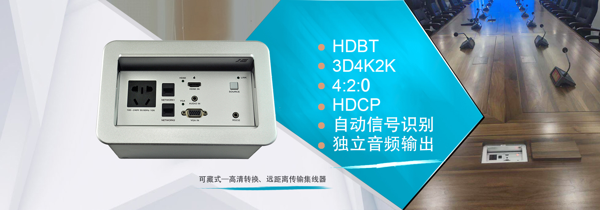 某集團(tuán)董事局會(huì)議室項(xiàng)目順利完工,董事局會(huì)議室作為日常董事會(huì)議、遠(yuǎn)程視頻會(huì)議功能,對(duì)于會(huì)議質(zhì)量、會(huì)議安全要求極為重要,在此次的項(xiàng)目中共10套金視遠(yuǎn)距離傳輸桌面型插座JS-670HD,配以遠(yuǎn)程接收器JS-570RX,實(shí)現(xiàn)圖像進(jìn)入矩陣進(jìn)行交互式切換顯示,實(shí)現(xiàn)桌面4K信號(hào)進(jìn)行長(zhǎng)達(dá)70米、1080P信號(hào)100米距離傳輸,保證信號(hào)在遠(yuǎn)距離傳輸?shù)耐瑫r(shí)能實(shí)現(xiàn)4K的信號(hào)效果?