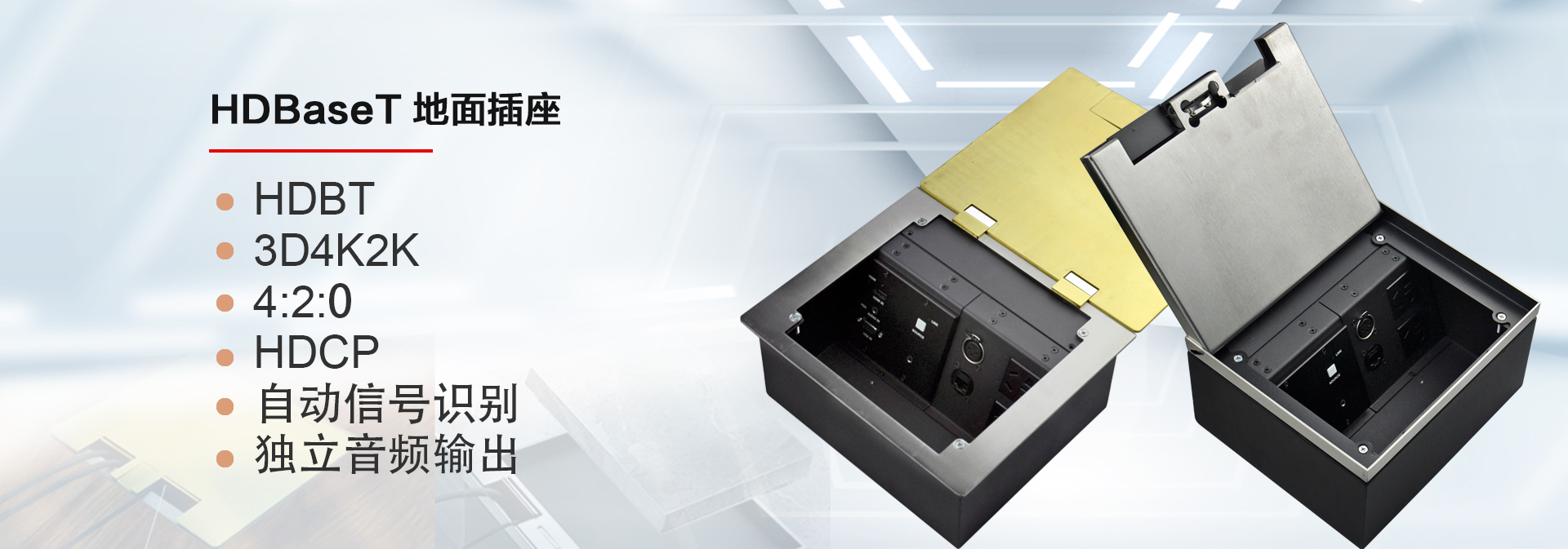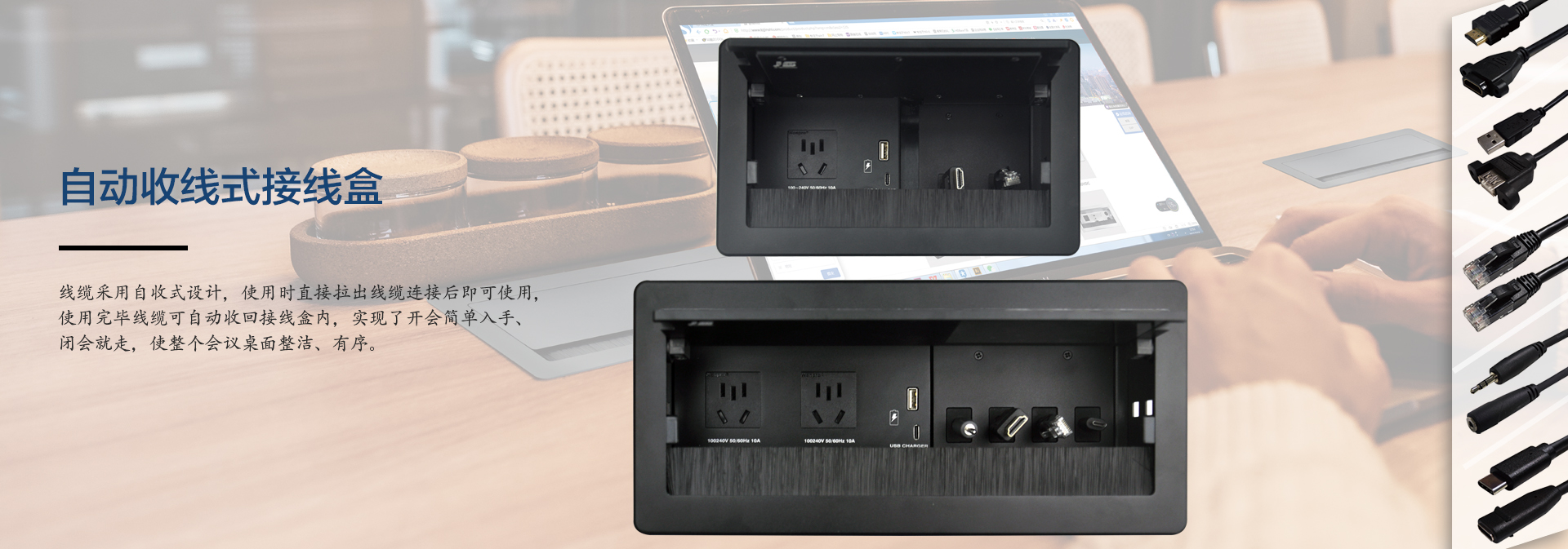 ? 某公司視頻會(huì)議項(xiàng)目,在設(shè)備選型中,金視JS-MF定制桌面插座)成為項(xiàng)目選定品牌及型號(hào),視頻會(huì)議共使用43套金視產(chǎn)品;(其中21臺(tái)為銀色,19臺(tái)黑色 分1層和5層會(huì)議室使用)? 金視JS-MF定制產(chǎn)品?桌面電動(dòng)翻轉(zhuǎn)插座,可藏式接線盒提供了一個(gè)整潔、緊湊、簡(jiǎn)單的連接解決方案。采用電動(dòng)控制,使用時(shí)只需輕按接線盒開啟按鍵,接線盒 180°旋轉(zhuǎn),隱藏的各種接口即展現(xiàn)