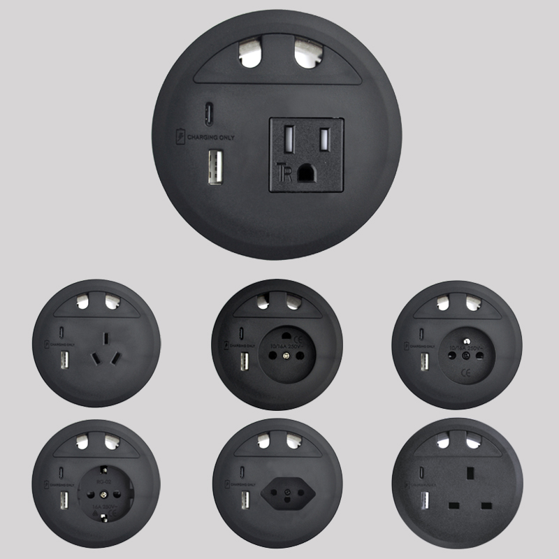 This recessed power strip is made of high grade aluminum-magnesium alloy, it can be mounted on furniture. provide people power source within reach. No more crawling under the desk to find power strips