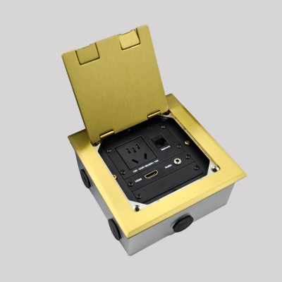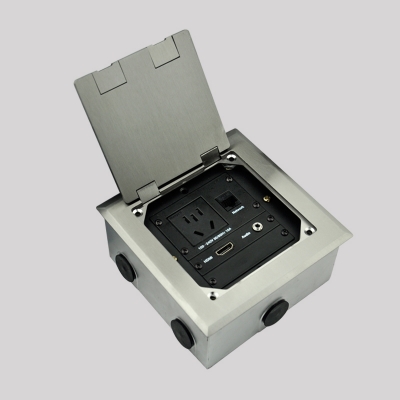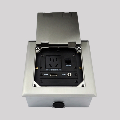 JS-DC series Floor Box provides an order, compact and permanent connecting solution for users. Panel of floor box is made of 5mm stainless steel, high bearing capacity (more than 1000kg). Wall plate and AAP insert plate can be fitted into JS-DC series Floor Box. Big cable pass through holes accept bulk cables come out when panel closed.