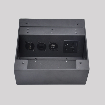 JS(金視)系列可藏式接線盒可以完美的展現(xiàn)線纜及接口的隱藏,且操作比較簡單,通過按壓(或掀起)接線盒表面面板來實現(xiàn)彈開和閉合,閉合后所有接口都隱藏起來,各種線纜可以有序的隱藏在接線盒后面,接線盒面板表面與桌面保持水平。